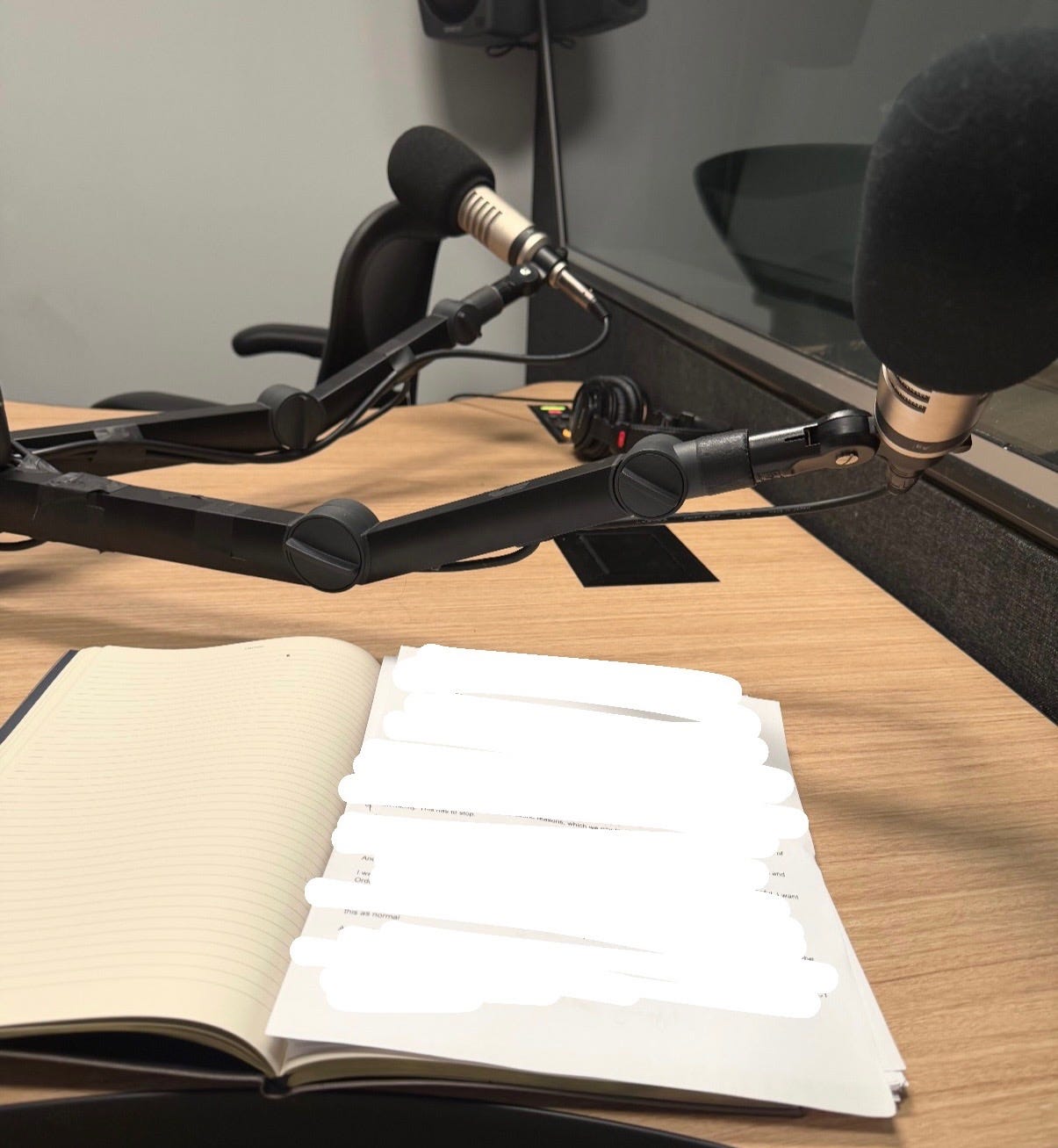 I took the elevator up to the audio floor and was led into the recording studio. I chatted with the producers about a great blazer one of them was wearing, drank some water, and took a few deep breaths to calm myself, be present, and not miss the moment.